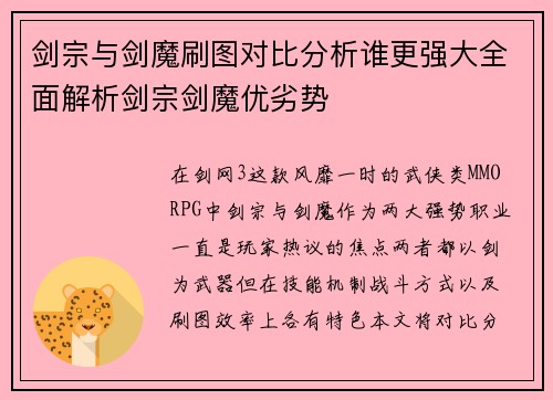 剑宗与剑魔刷图对比分析谁更强大全面解析剑宗剑魔优劣势