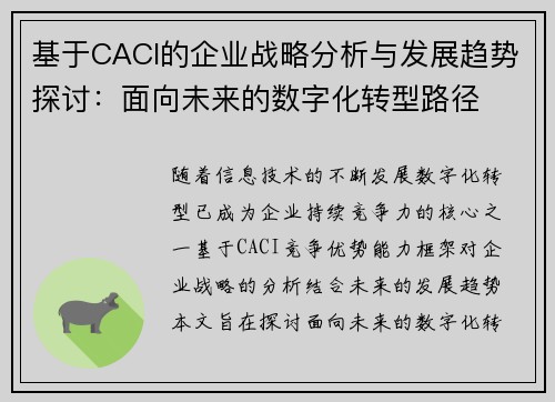 基于CACI的企业战略分析与发展趋势探讨:面向未来的数字化转型路径